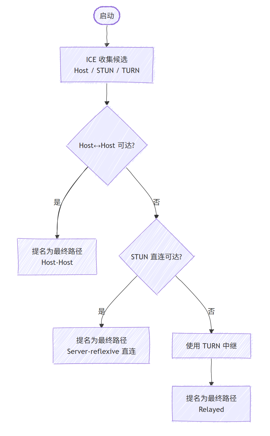 - 画一张你自己的流程小图,用不同颜色标出 Host / STUN / TURN 的尝试顺序。