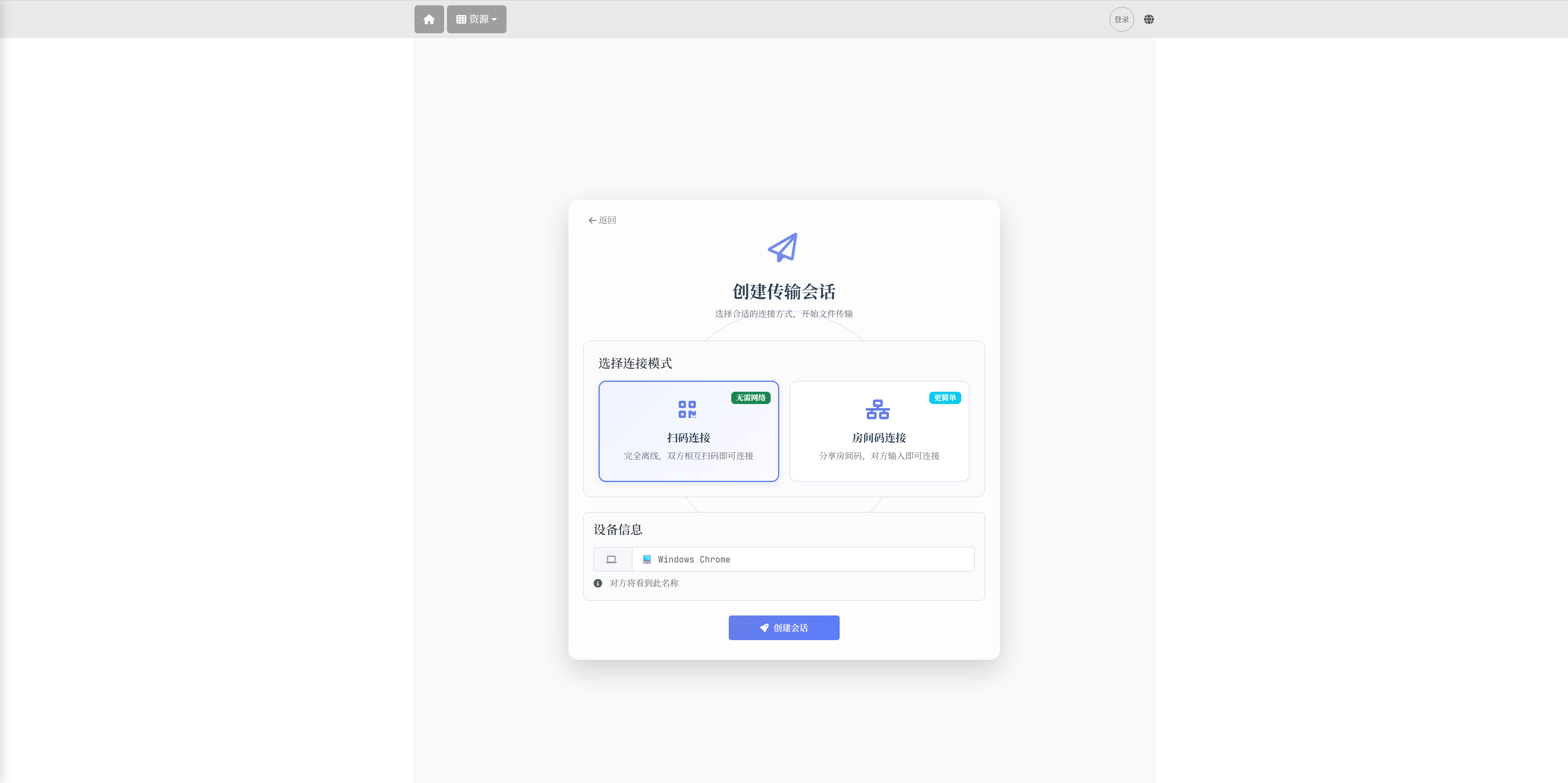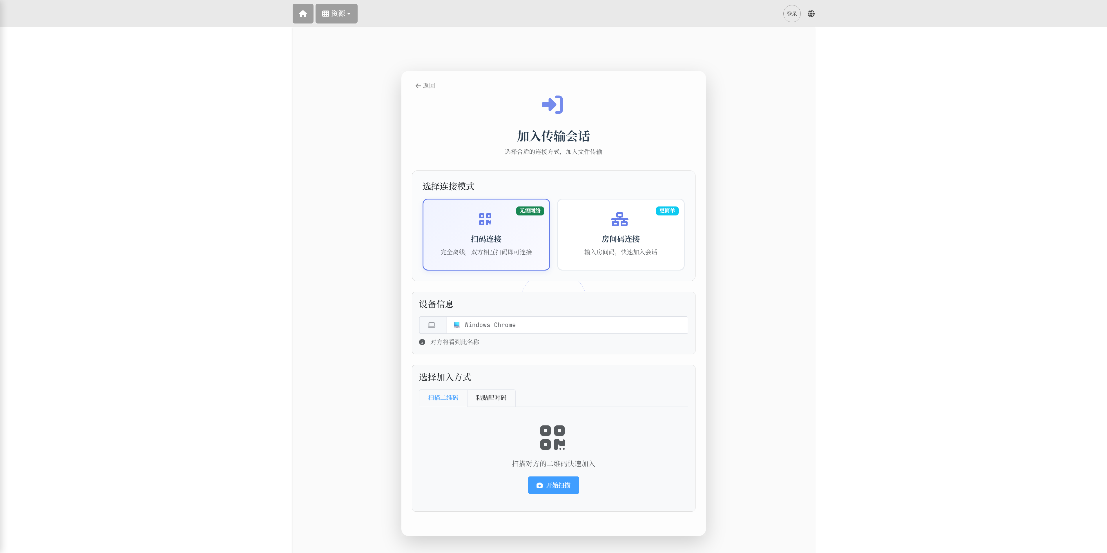 扫描发送端的 Offer 二维码